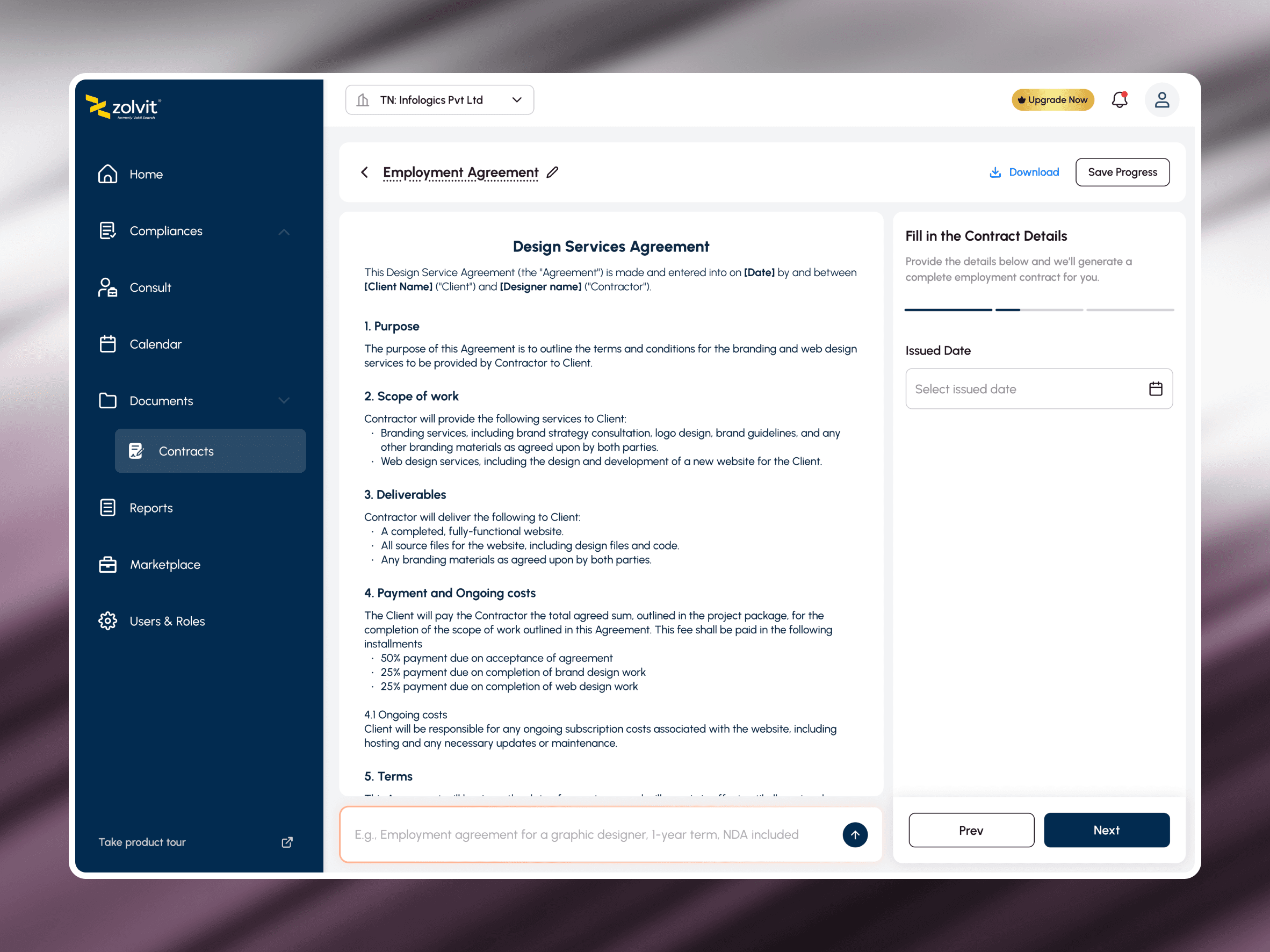 AI-Generated Contracts: A built-in AI feature lets users create new contracts through natural prompts or templates — cutting repetitive drafting work for enterprise teams.