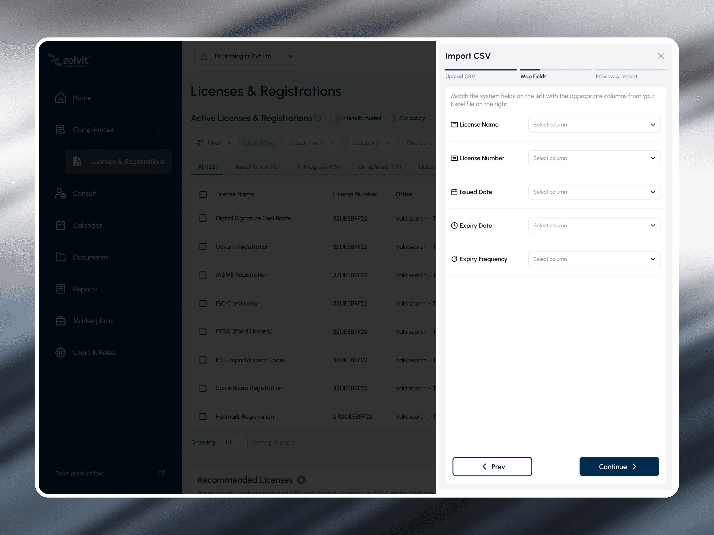 Smart bulk management: Enterprises can upload or update licenses in bulk via CSV import — the system auto-maps data fields to reduce manual setup.